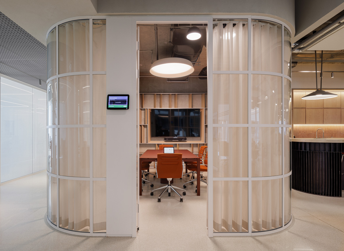 החוויה המרחבית מזמינה את המשתמשים לנוע בצורה חלקה בין אזורי עבודה פתוחים, חדרי ישיבות אינטימיים ומעברים רכים המהדהדים את סמטאות העיר ושדרות העלים. אור טבעי מציף את המרחב, מחזק תחושת בהירות ואופטימיות – תמצית רוחה של תל אביב.