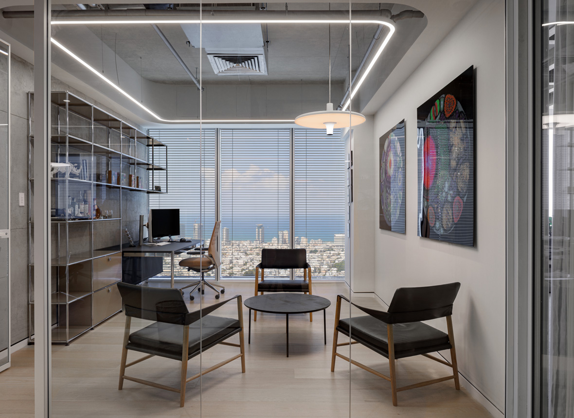 The office design draws inspiration from Tel Aviv’s White City – a symbol of Bauhaus architecture and the pioneering spirit of the early 20th century – reinterpreted into a contemporary, refined, and precise design language.